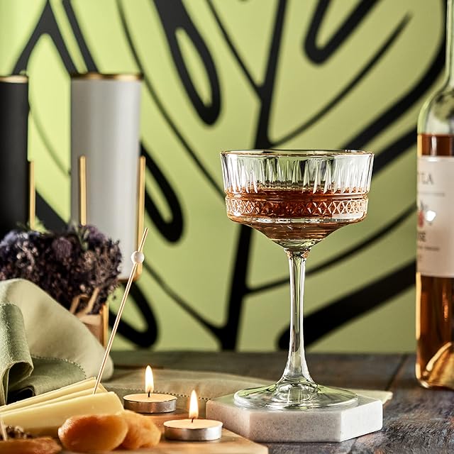 クラシックなヴィンテージ デザイン: クーペ グラスの歴史的なデザインをアップデートし、飲み物の味わいを完璧に高めます。ガラスのボウルとステムとベースの比率が、エレガントでバランスの取れたヴィンテージ グラスの外観を作り出します。