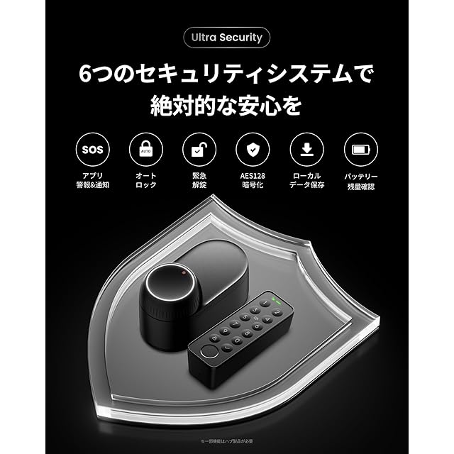 【Ultra Security-絶対的な安心を】警報・通知/オートロック設定/緊急指紋・パスワード/データの保護・保存/締め出し防止と、あらゆる方面のセキュリティ対策と防犯対策で絶対的な安心を実感していただけます。アプリからドアロックの開閉状態や履歴、バッテリーの残量などを随時確認でき、ドアが開閉されるとアプリに通知を送信、半ドア状態になると警報が鳴ります。また、ストーカーにつけられているなどの危険時に、予め設定しておいた緊急指紋/緊急パスワードで鍵を開けると、アプリ通知で家族に危険をお知らせ。バッテリー残量が低下すると、充電を促す通知がアプリに届きます。