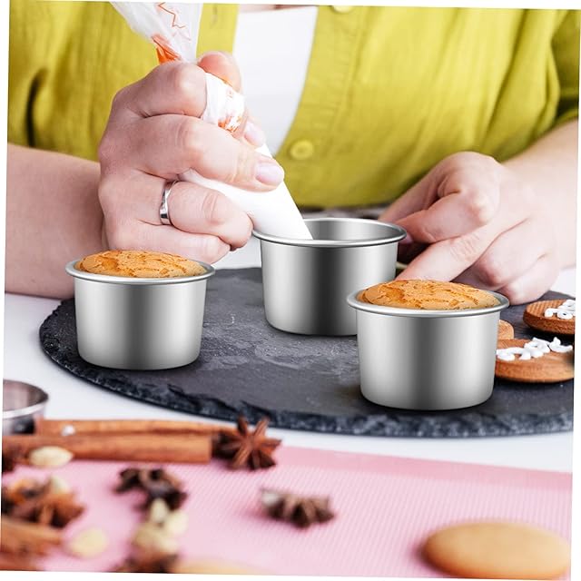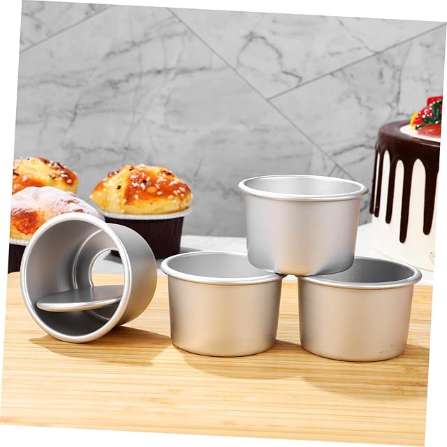 Kichvoe 4 個 ケーキ型 ベーキング用のケーキパン ラウンドベーキングパン スフレパン ディープケーキパン ケーキ耐熱皿パン テ加工のプリンパン ミニラミキンカップ クイックリリース, 6.4*5*4cm