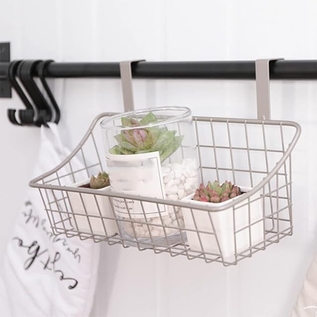 Haskoss バスケット 突っ張りラック 収納かご ハンギングバスケット フックグリッド収納バスケット付きバスケット、ドアの後ろまたは手すりに掛けて、お風呂 カゴ キャビネットのドアの上に、白