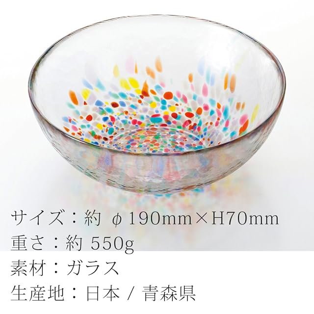 津軽びいどろ工房「NEBUTA」 ねぶた多様鉢 F-71169 最大19高7 箱サイズ:長20.2幅19.7高8.7 東北三大夏祭りのひとつである「ねぶた祭り」の鮮やかさを8色の色ガラスに映しとりました。ガラスの透明感と多彩な色が響き合います。