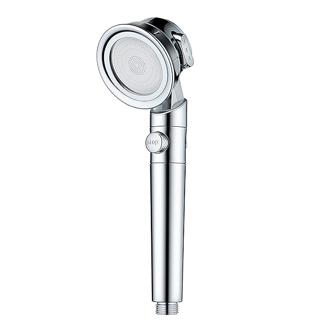 商品名:シャワー バス 節水 デジタルランド 節水シャワーヘッド 手元止水ボタン付 節水50% 口径2cm 3段階水流調整可能 DL-210419 シルバー