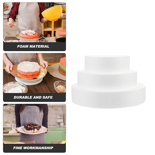 フェイクケーキレイヤー - 3つのサイズの背の高いフェイクウエディングケーキ用の丸いフォームケーキダミー、装飾や工芸品、ベーキングディスプレイ、ウエディングケーキのデザインの細かい技量と創造的な外観により、その と実用性が されます。