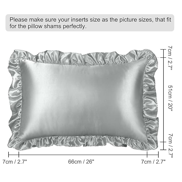 PiccoCasa 枕カバー サテン フリル ひんやり レーヨン 封筒式 接触冷感 ピローケース 2枚 セット シルクみたい柔らかい 両面枕カバー 無地 防臭 美髪 美肌 シルバーグレイ 50 x 65cm