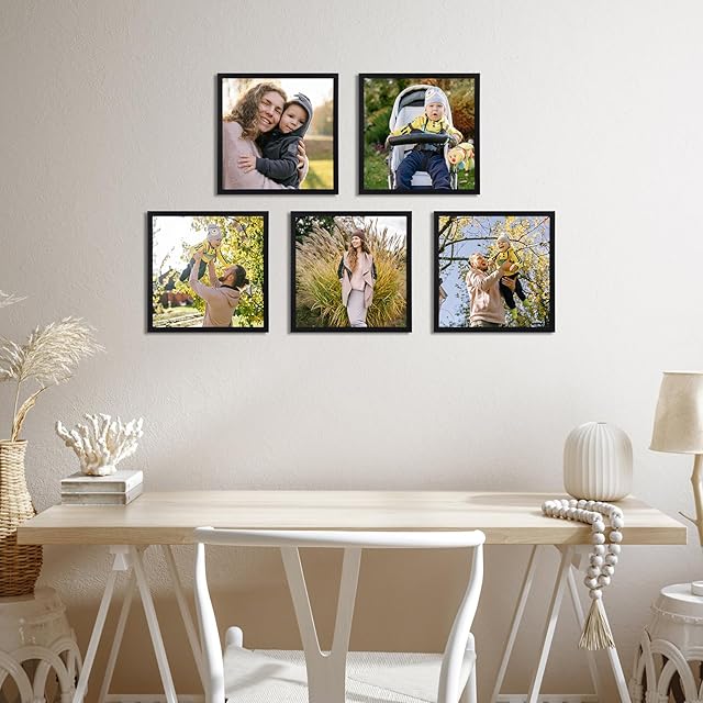 Vasemouh 額縁 正方形 25角 額 フォトフレーム 250x250mm ポスター 絵 写真 ブラック 1枚 壁掛け 卓上兼用