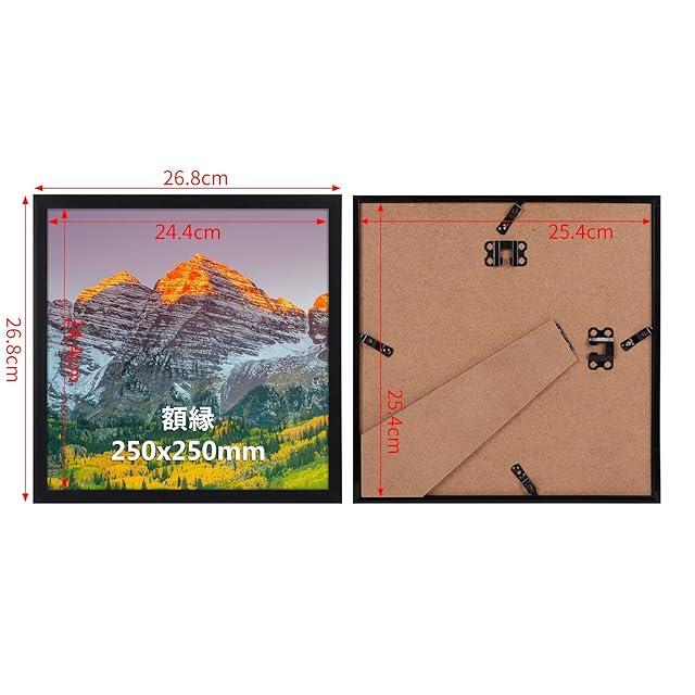 商品名:Vasemouh 額縁 正方形 25角 額 フォトフレーム 250x250mm ポスター 絵 写真 ブラック 1枚 壁掛け 卓上兼用