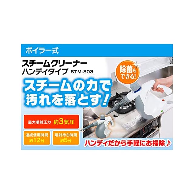 アイリスオーヤマ スチームクリーナー ハンディタイプ 高圧スチームで汚れを洗浄 布用ノズルで衣類のしわ伸ばしにも STM-303