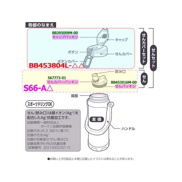 商品名:象印 ZOJIRUSHI BB453804L-△△ ステンレスクールボトル用 せんカバーセット ワンタッチオープン 直飲み 水筒用交換部品 対応機種:SD-B型【c】Lid set(SD-BD20-BG(11))