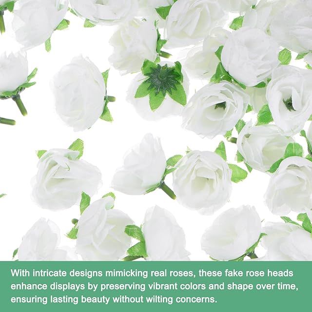 M METERXITY 50パック 人工バラ 花 ヘッド 1.2" 小さなシルク製 偽 バラ ヘッド ウェディング/ブーケ/パーティー 装飾用 フェイク 花 ヘッド つぼみ[ホワイト]