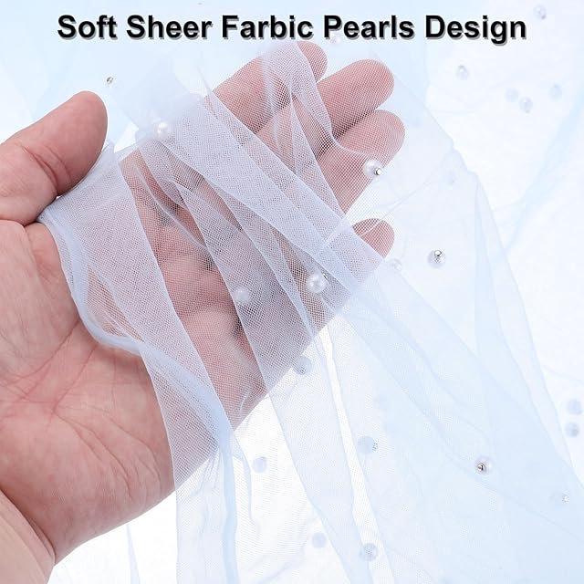 シアーファブリック素材:テーブルランナーは独自の透明なチュール生地で作られており、耐久性があり触り心地が柔らかいです。パールは金属ピンで固定されており、簡単に落ちることはありません。