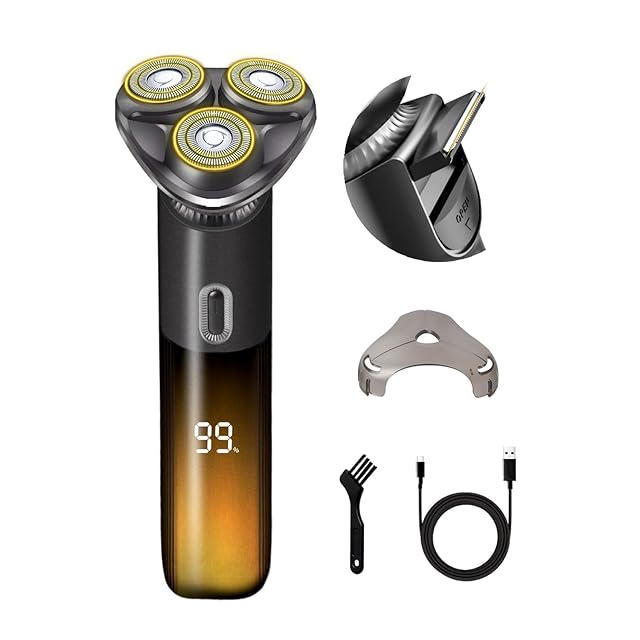 シェーバー メンズ 髭剃り 電動 電気シェーバー 電動シェーバー 電気カミソリ 髭そり ひげそり 回転式 乾湿両用 Type-C USB充電式 LEDディスプレイ IPX7防水 1200mah大容量バッテリ お風呂剃り可「2025革新型・日本製刃」日本語説明書付き 1年品質