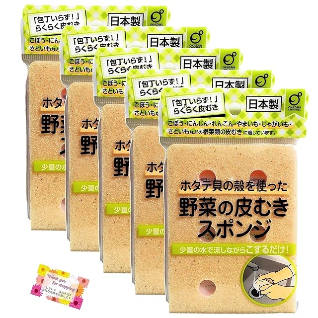 【まとめ買い】 野菜の皮むきスポンジ 天然ホタテ貝の殻 研磨材 こするだけ ごぼう にんじん れんこん やまいも じゃがいも さといも 根菜類 業務用 厨房 【5個セット】