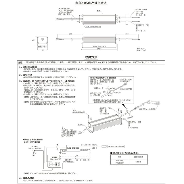 商品名:DNライティング LED棚照明器具 DNLED's 直流電源装置(コンバータ) 多灯用 非調光・調光兼用 最大使用W数168Wまで(一部144Wまで) 容量:267VA 据置き型 ELD2-24240FD