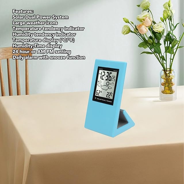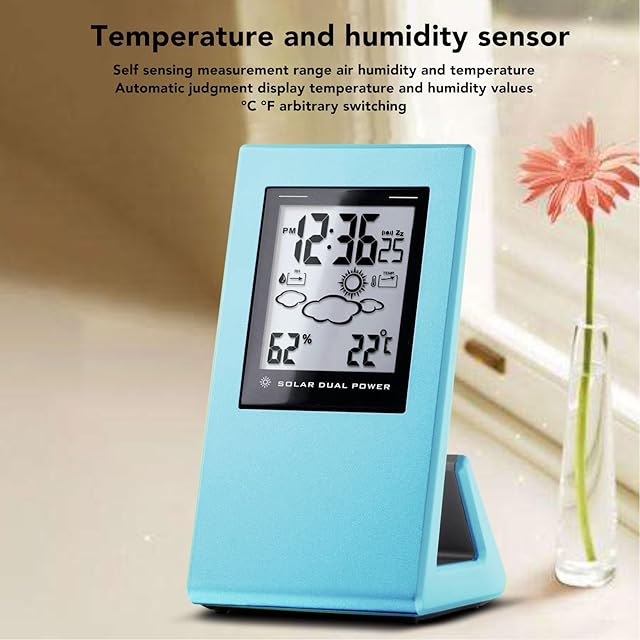 デジタル時計 温湿度計 ソーラー発電 タイミング温度/湿度機能 ソーラークロック センサー LCDデジタル 室内外温度 室内湿度 置き掛け両用 温湿度測定 家庭用 熱中症予防 (青), xuuyuuhakb74de1x-11