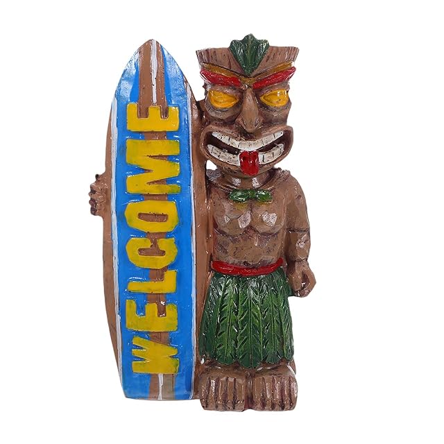 YARDWE サーフボード 樹脂製 オーナメント サーフボードの装飾品 装飾的なサーフボード ようこそ彫刻 ようこそガーデンオーナメント ハワイのティキ彫像 ハワイのティキ装飾 ティキバーの看板 ハワイのウェルカムサイン ソーラー
