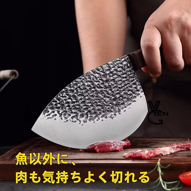 VGTEN 魚用包丁 魚捌き包丁 刃渡り16cm 手打ち鍛造 カーボンステンレス鋼 ウェンジハンドル 魚市場 解体 調理 渓流釣り 出刃包丁 特殊包丁 魚屋 包丁