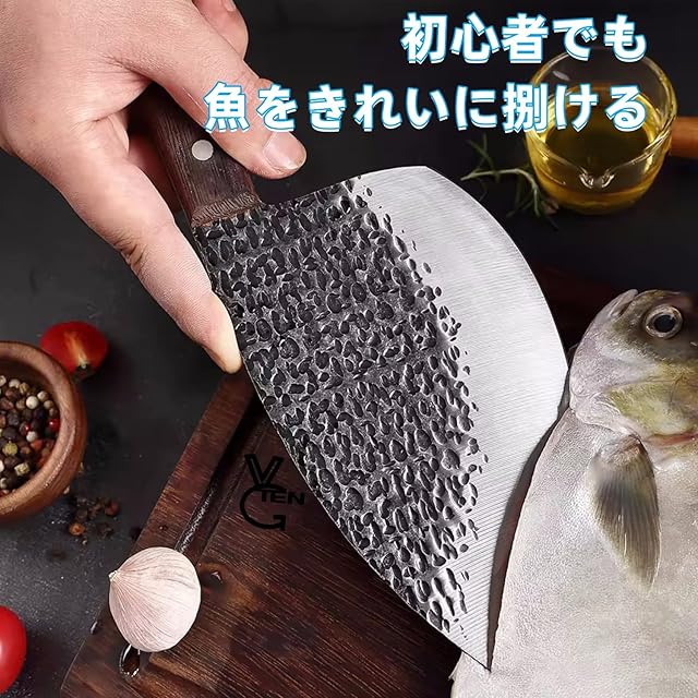 商品名:VGTEN 魚用包丁 魚捌き包丁 刃渡り16cm 手打ち鍛造 カーボンステンレス鋼 ウェンジハンドル 魚市場 解体 調理 渓流釣り 出刃包丁 特殊包丁 魚屋 包丁