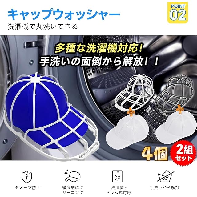 【2組セット】 キャップウォッシャー 帽子 洗濯 キャップ 型崩れ防止 強力洗浄 裏当て 洗濯ネット ウォッシャーキャップ 野球帽 ドラム式 洗濯機 乾燥機 吊り下げ収納 子供 大人用