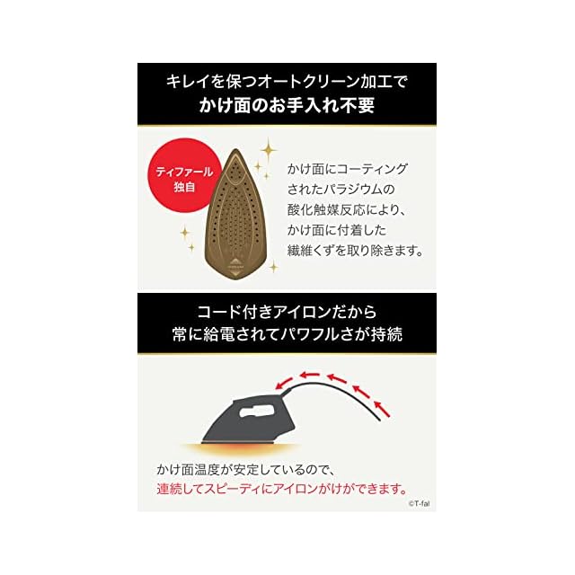 ティファール コード付き スチームアイロン パワフルスチーム 最大140g/分 エアーグライドかけ面 オートクリーン加工 「アルティメット」ブラック×ゴールド FV6828J0