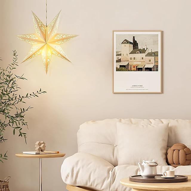 透過光効果: 白色の紙素材が光を透過し、幻想的な星の形を浮かび上がらせ、ロマンチックな雰囲気を演出します