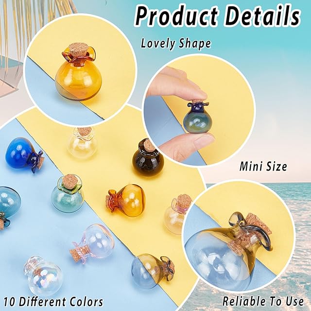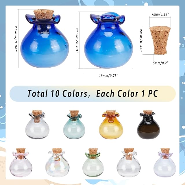 【商品の特徴】 <br> ■材質:ガラス<br> ■数量:10個/セット。<br> ■サイズ:<br> 約0.98インチ(2.5cm)、ボトル(コルクなし):0.83x0.75インチ(2.1x1.9cm)、コルク:0.35x0.28インチ(0.9x0.7cm)、内径:0.20インチ(0.5cm)。<br><br> ■ご覧頂きありがとうございます。<br> 購入する前、商品のサイズと数量を確認してください。同じ商品でも入荷時期等により、大きさ・色や模様の出方などが一定ではありません。ご了承ください。<br><br> PH PandaHallはアクセサリー専門店です。当店では、他のビーズやチャーム、アクセサリーパーツなどハンドメイド手芸用品も販売しています。是非、ご覧下さい。