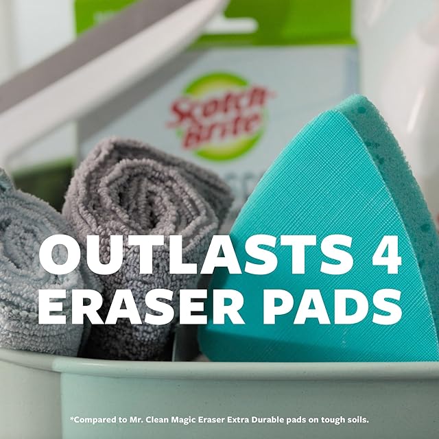 3倍速いクリーニング: スクラブパッドは、消しゴムパッドの3倍の速さで堆積物をカットします [Mr. Clean Magic Eraserより丈夫なパッドは丈夫な土壌に比べて]。