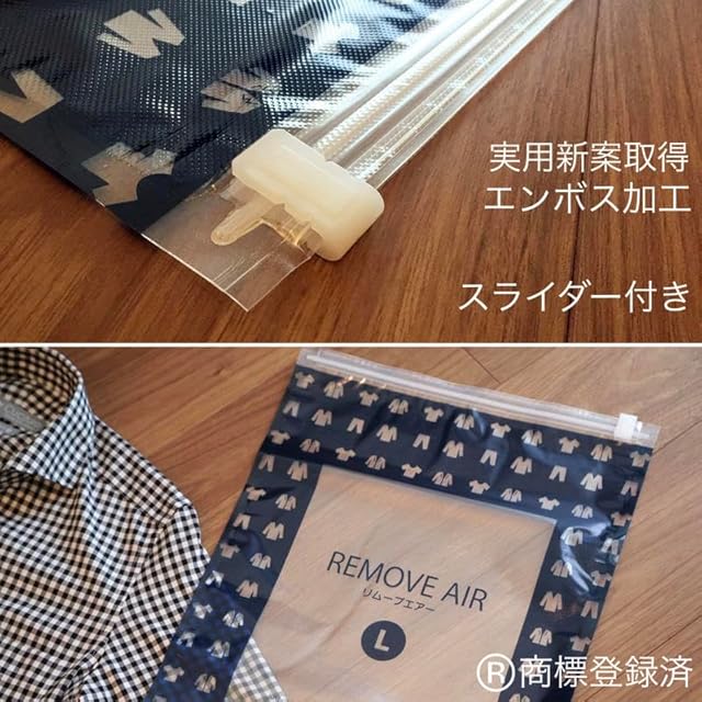 商品名:リムーブエアー 衣類圧縮袋 18枚セットアソートプラス8 日本製 エンボス加工あり 旅行用 掃除機不要 収納用