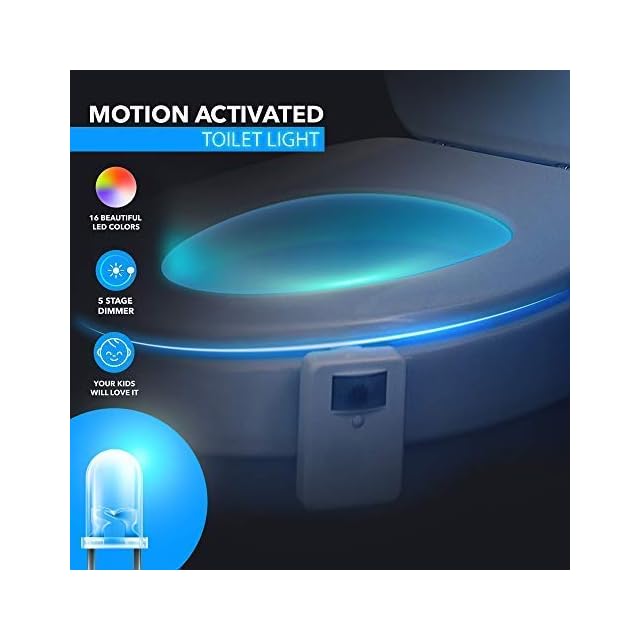 16色・170度の感知域 - この人感センサートイレライトは、トイレの便器の内側で点灯し、トイレトレーニングを楽しめます。16色をローテションしたり、コントロールボタンを使って単色にしてお使いいただけます。 170度の感知域で、多くの120度以下の感知域のトイレライトより広い範囲で動きを感知します。