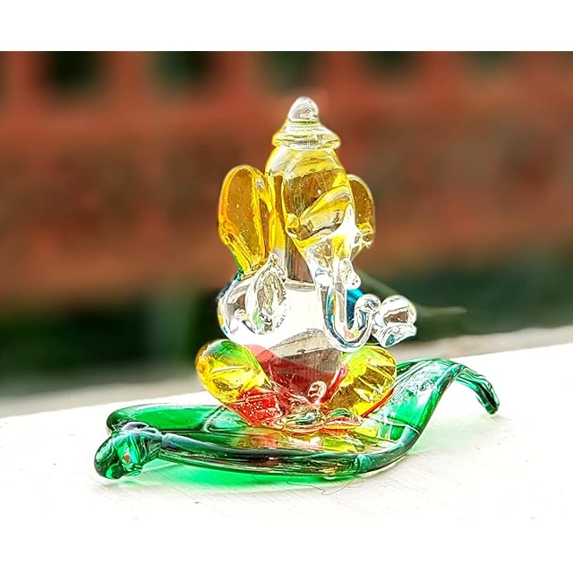 StonKraft ガネーシャ ガネーシャ ムルティ アイドル 像 彫刻 (2.5インチ) カーダッシュボード アイドル | クリスタルガラス