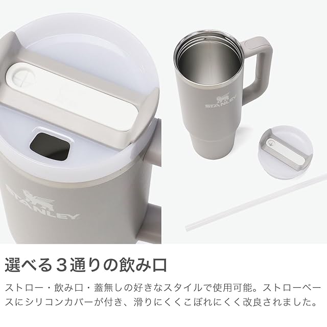 【素材】 <本体(内瓶、胴部、肩部)> ステンレス鋼 <パッキン> シリコーンゴム <ハンドル> ポリプロピレン <蓋> 飽和ポリエステル樹脂、ポリプロピレン <ストロー> 飽和ポリエステル樹脂(トライタン)