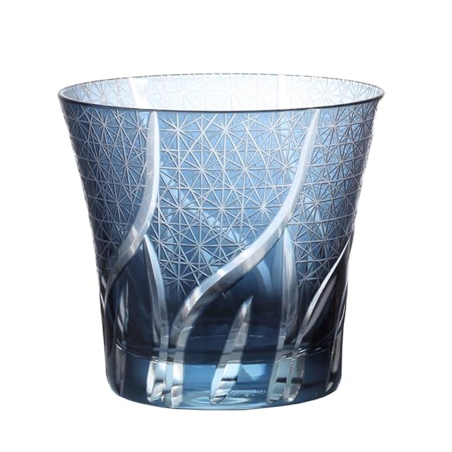 切子 グラス タンブラー ロックグラス ビールグラス ぐい呑み ウィスキー… (インクブルー)