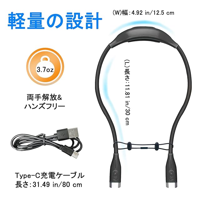 【Type-C充電式&1000mAhバッテリー】このネックライトは、1000mAh大容量リチウム電池が内蔵し、USB Type-Cコネクタを採用し、充電損失が減少し、安定的な照明提供できます。約3時間に一回フル充電で、8ー30時間の稼動が可能になります。「フル充電での最大稼働時間は、弱モードで約30時間になります。」