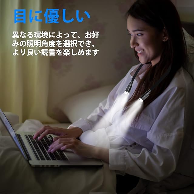 【フレキシブルアーム】ledネックライトは、アームの柔軟性が強くて、360度を調節可能、周り人の睡眠を妨げしません。左右のアームは約30㎝で、異なる環境によって、お好みの照明角度を選択できます。自由的に首、手腕、足などに曲げられできます。形崩れは心配しません。