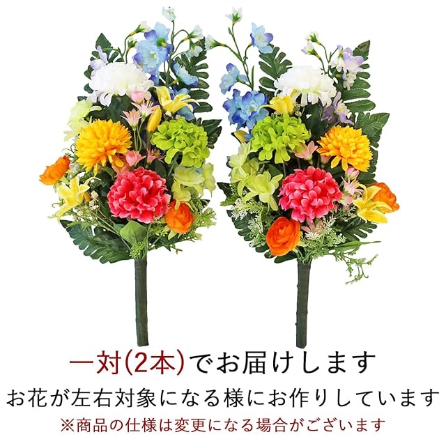 商品名:山久 造花 仏花 カラフルダリアとオダマキの花束 一対 約43cm CT触媒(消臭分解・防汚)加工 シルクフラワー お彼岸 お盆 お仏壇 お墓 花 お供え btb