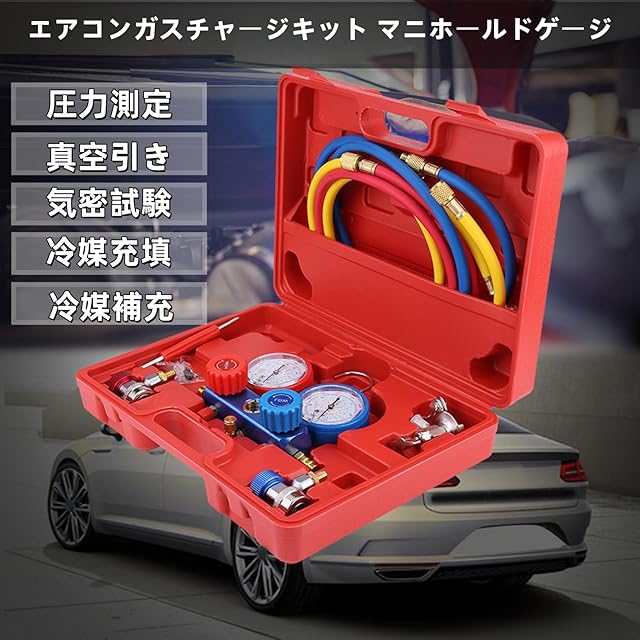 マニホールドゲージ R134aエアコン冷媒マニホールドゲージセット1.5m充電ホース付き 自動車用エアコンシステムのテスト用