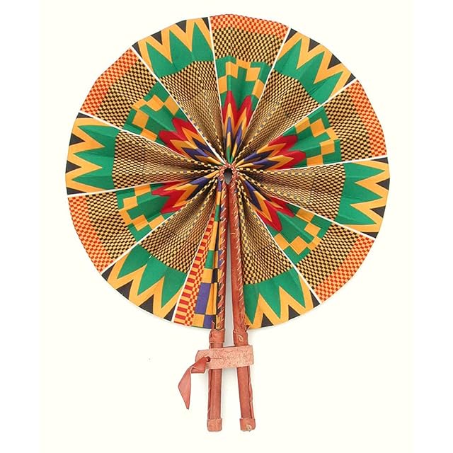 商品名:アフリキコ AFRIKICO アフリカンうちわ(コットンプリント 折りたたみ式) Kente Fan ガーナ製 Made in Ghana (ケンテ柄 Kente 105, レギュラー Regular)