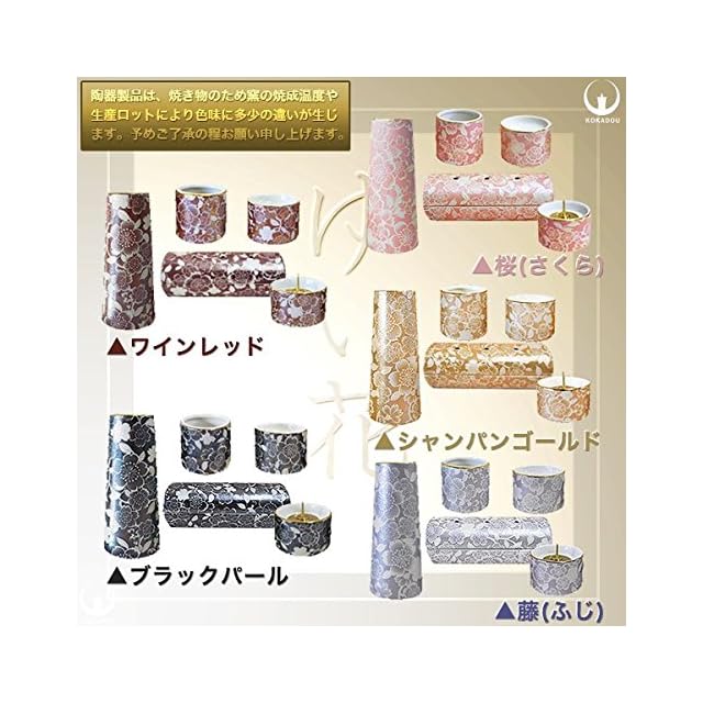 商品名:陶器製 モダン仏具5点セット『ゆい花』 (横置き筒型香炉) ブラックパール (j1272-1-2)