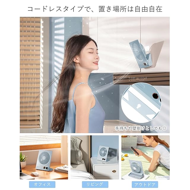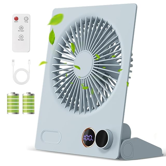 卓上扇風機 静音 小型 Kemolpo【2025新型 リモコン&タイマー機能付き】卓上&壁掛け兼用 風量無段階調節 強力 4000mAh大容量 電池残量液晶表示 usb 充電式 180度角度調節 折りたたみ式 厚さ3.2㎝ スリム コンパクト 省エネ デスクファン オフィス アウトドア 暑さ対策 (ブルー)