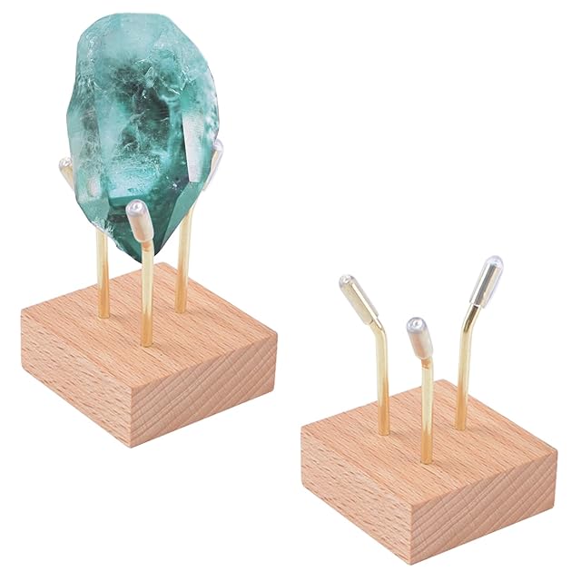 HOMMDECO 小型木製クリスタルディスプレイスタンド 2個セット 三本ピンの岩のディスプレイスタンド 鉱物、瑪瑙、化石、サンゴ、クリスタル、宝石のコレクション用
