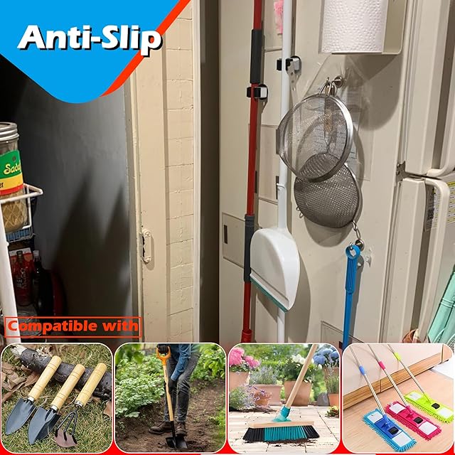 ユニバーサルマグネットツールホルダー:可動式のほうきモップクリップは、ほうき、モップ、ラック、雑巾、ブラシ、手袋、野球のバットなどを掛けるのに非常に便利です。 キッチン、バスルーム、ガレージ、ランドリー、ほうきクローゼット、洗濯収納に適しています。