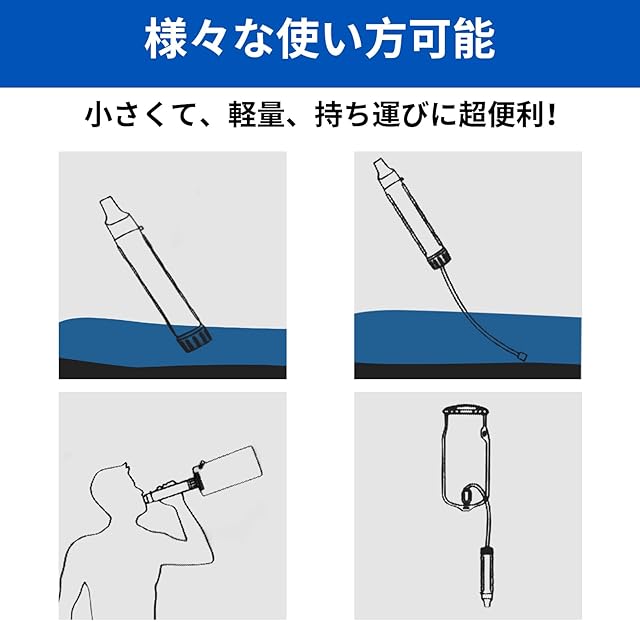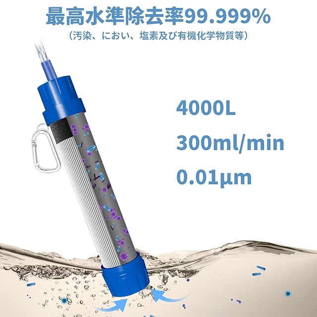 【持ち運びに便利】水フィルターストローの末端は取り外し可能で、清潔、フィルターの芯を取り替えることもできます。4000リットルまでの飲料水を提供することを確保されます。どこに行っても、きれいな水を簡単に飲むチャンスを逃さないでください。