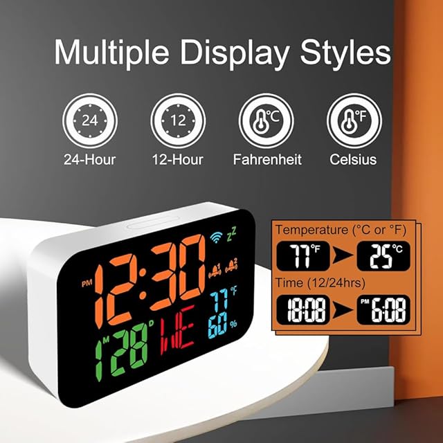 簡単な時間管理: WIFI に接続すると、自動時間調整の便利さを体験できます。好みに合わせてスヌーズ機能付きの 2 つのアラームを設定します。 USB 経由で電力供給されるこの時計は、デスクトップに置いても壁に取り付けても、多用途に使用できます。家庭、オフィス、倉庫、温室に最適です。
