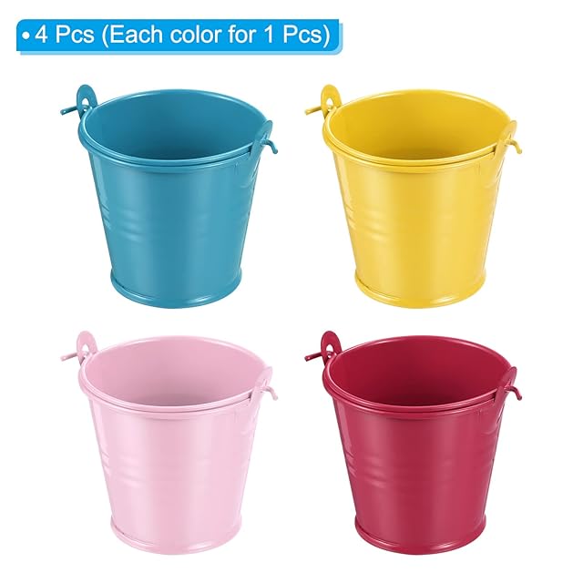 PATIKIL 6 x 4.2 cm 小さな金属バケット 4個 カラフル バケット かわいいキャンディータイニー 飾り桶 工芸品パーティー記念品用 アソートカラー