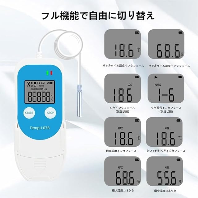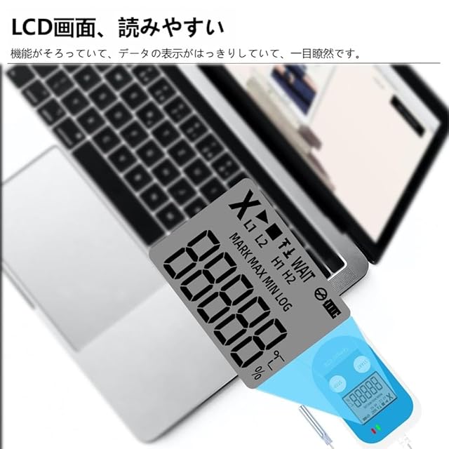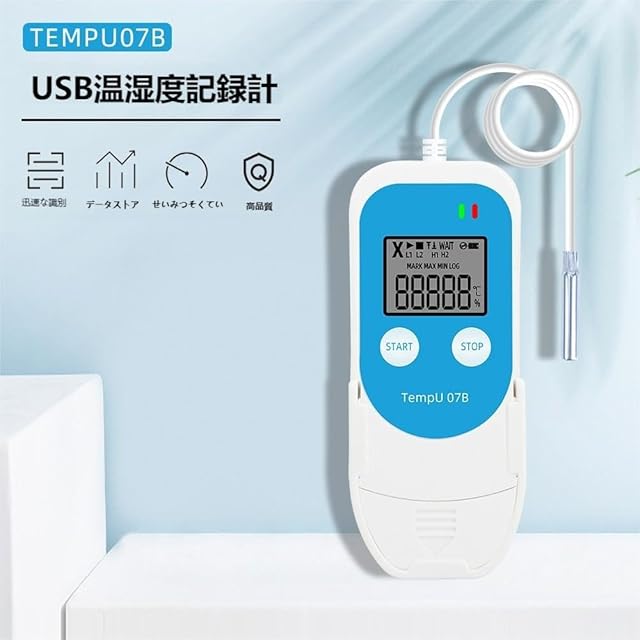 【多用途データロガー】高精度のセンサーを採用し、最大34560点の温度と34560点の湿度を記録。