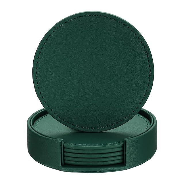 uxcell ドリンク用レザーコースター ホルダー付き ドリンクコースター テーブルトップ保護 ホームデコレーション 新築祝いのギフト用 緑 1セット