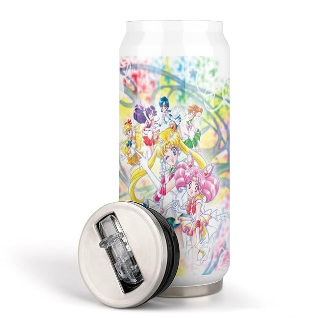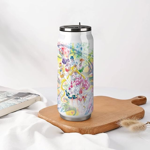 美少女戦士セーラームーン 水筒 マグボトル おしゃれ軽量直飲みウォーターボトル SUS304食品グレードステンレス製フタ付きコーラ缶魔法瓶カップ 保冷・保温 漏れ防止コーヒーカップ。500ml