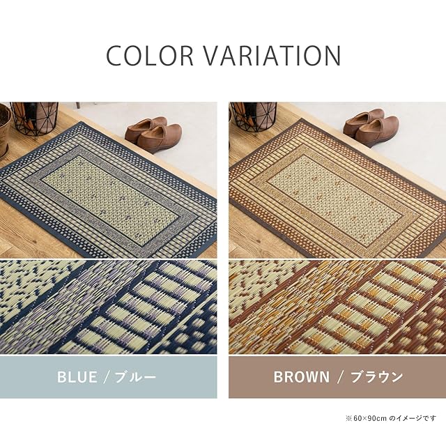商品名:萩原 国産 い草 玄関マット 裏貼り エルモード ブルー 約87×180cm 屋内 大判 大きめ 滑り止め付き
