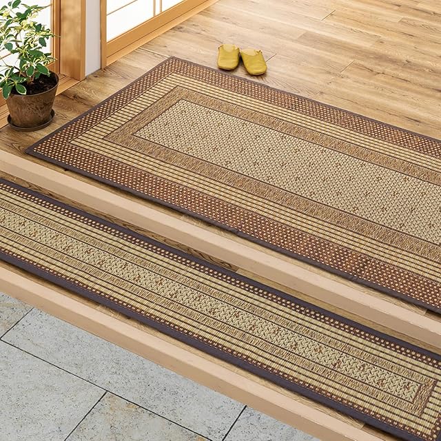 萩原 国産 い草 玄関マット 裏貼り エルモード ブラウン 約30×150cm 屋内 大判 大きめ 滑り止め付き