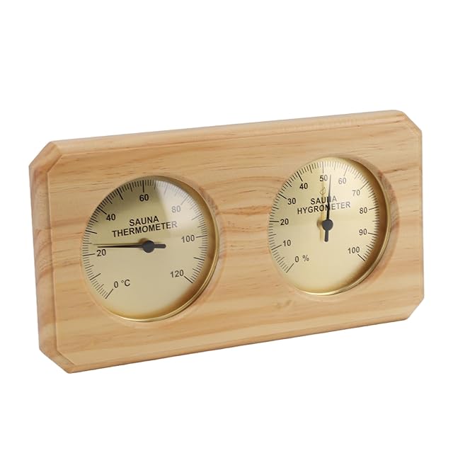 視覚的な美しさ:金色の木製フレームと無垢材の素材は、2 in 1サウナ温度計と湿度計に独特の高貴でファッショナブルな雰囲気を与え、サウナ室に芸術的な魅力を加えます。