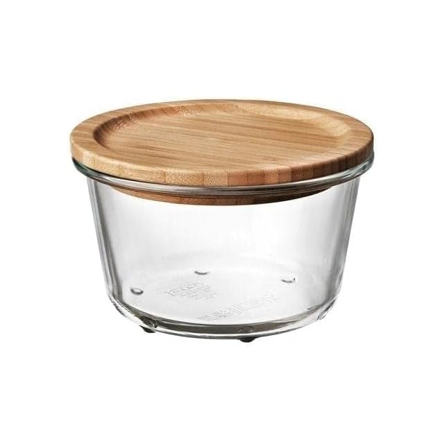 ■保存容器: 耐熱ガラス 、ふた: 蓋: 竹, 透明ニトロセルロースラッカー、パッキング: シリコーンゴム
